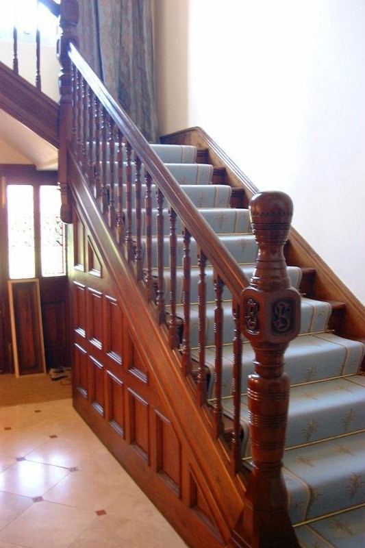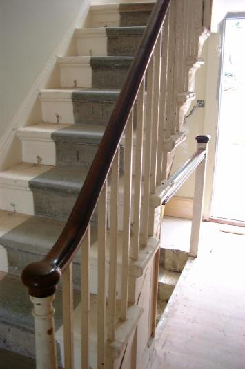 Handrail and panelling has been stripped, coloured, polished and waxed