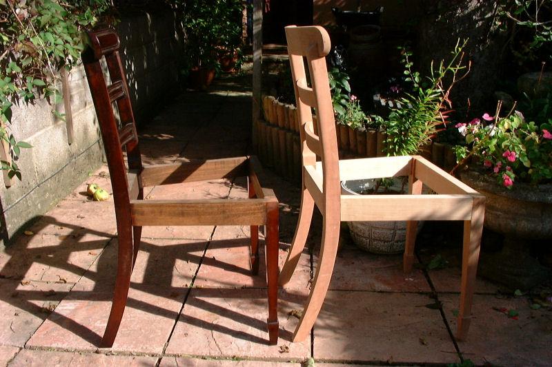 Photograph of one of the new chairs next to the original