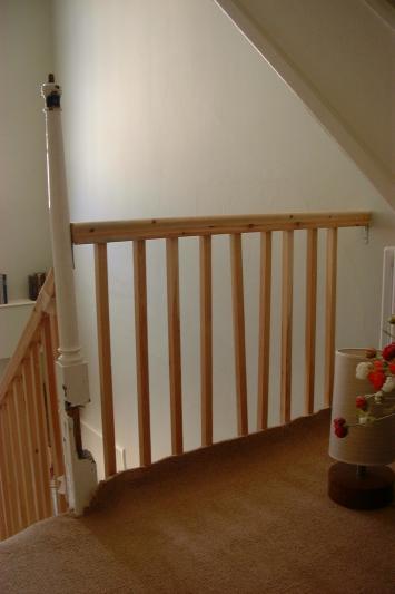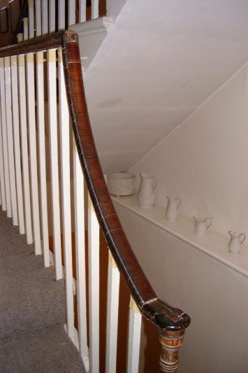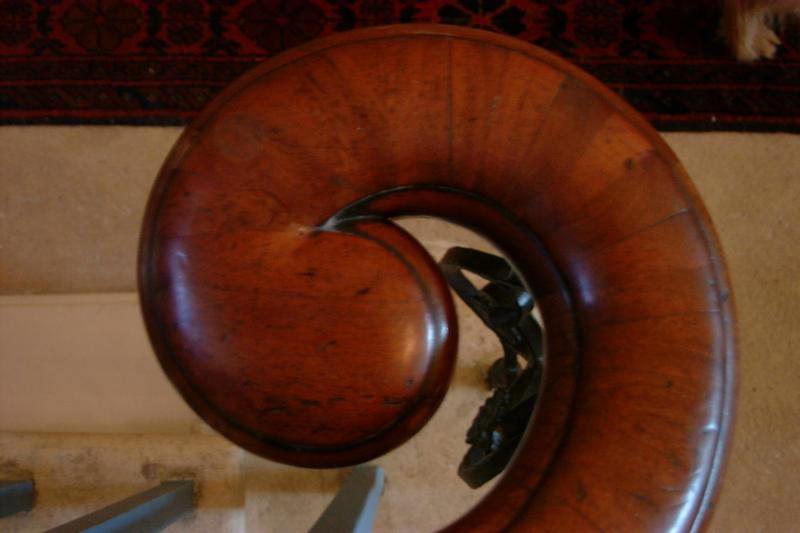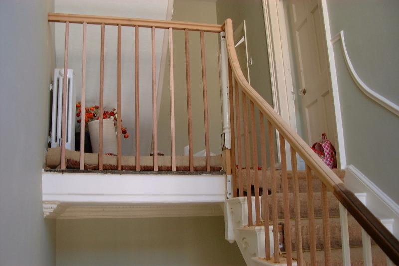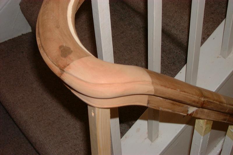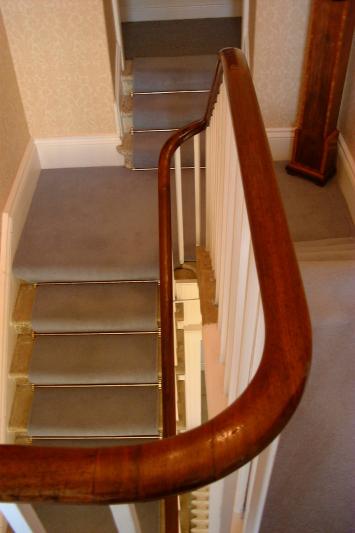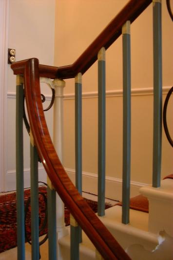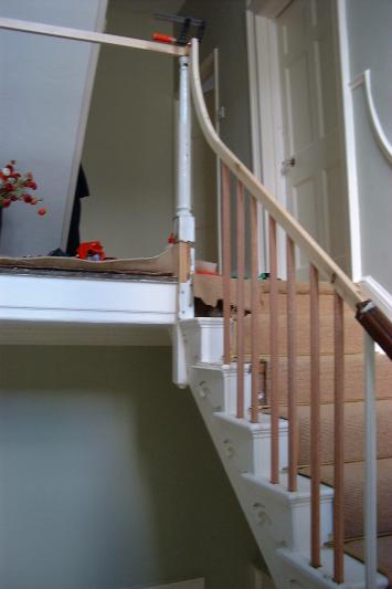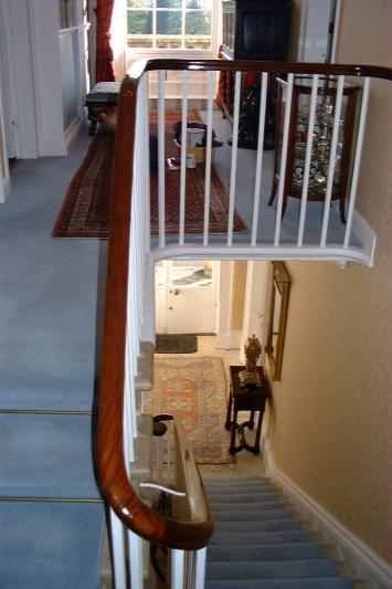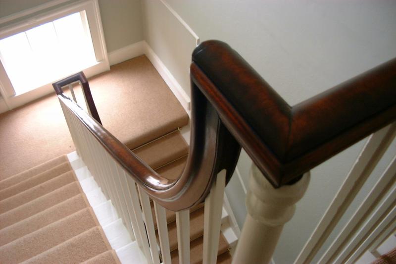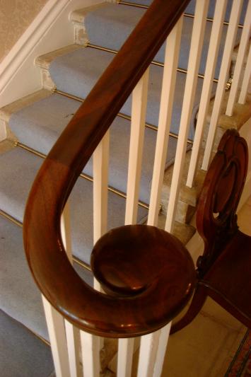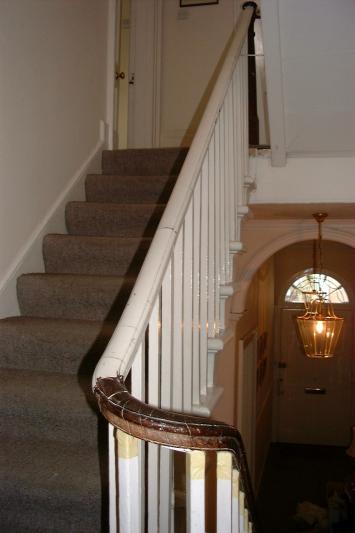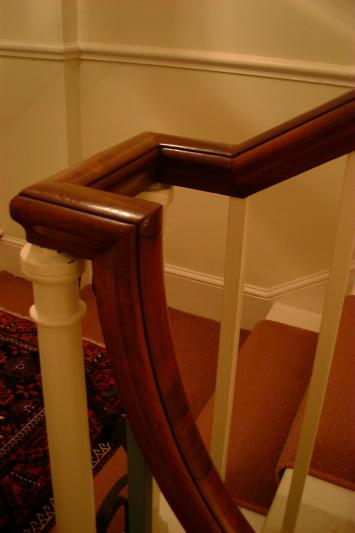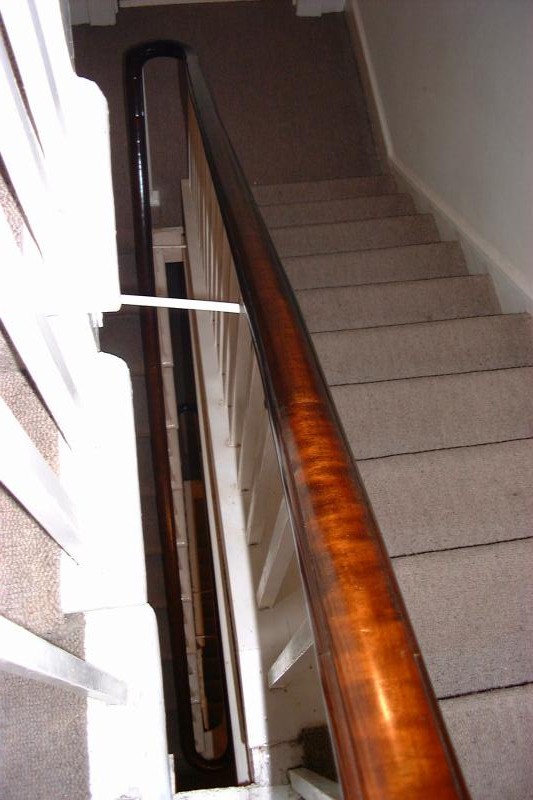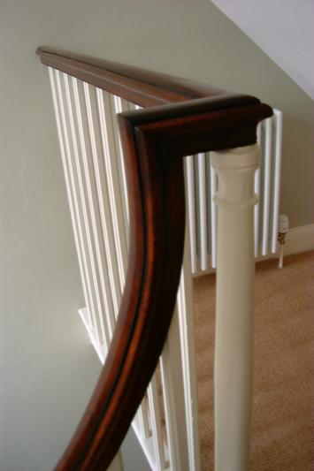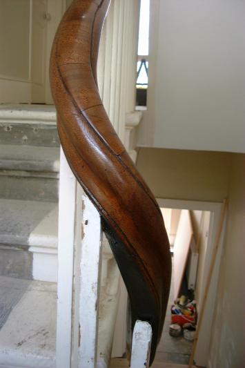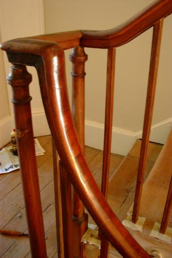 Photgraph of completed banister, handrail coloured, polished and waxed