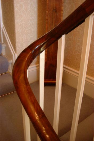 Photgraph of completed banister, shows polished handrail