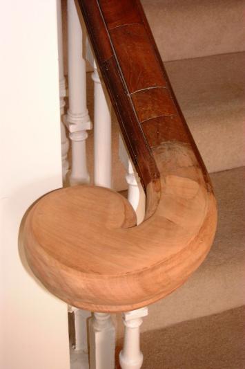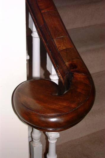 Detail of altered newel post with completed handrail