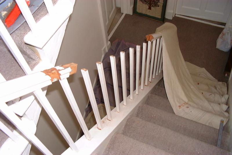 Show damage to banister before restoration